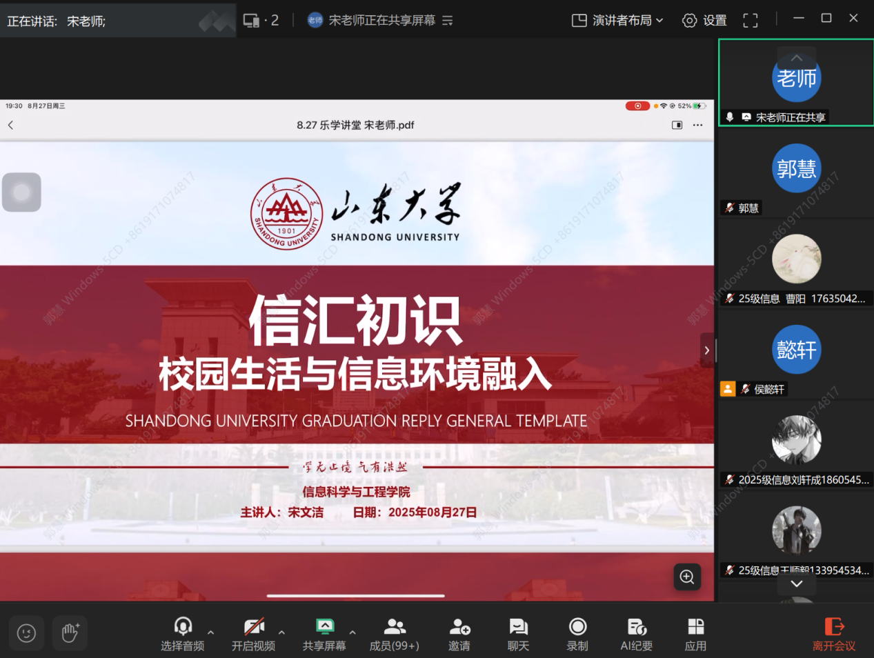 此次“乐学讲堂·大学初体验”讲座活动内容全面、细节详实,为ylzzcom永利总站线路检测2025级新同学绘制了一份清晰暖心的入学指引图。它不仅精准传递了关键信息、切实缓解新生的入学焦虑,更让新同学深切体会到了信院大家庭的温暖!学院将以此次活动为新开端,持续开展新生指引活动,助力2025级新生快速融入山大大家庭,在“学无止境,气有浩然”的校训指引下开启精彩的大学旅程!