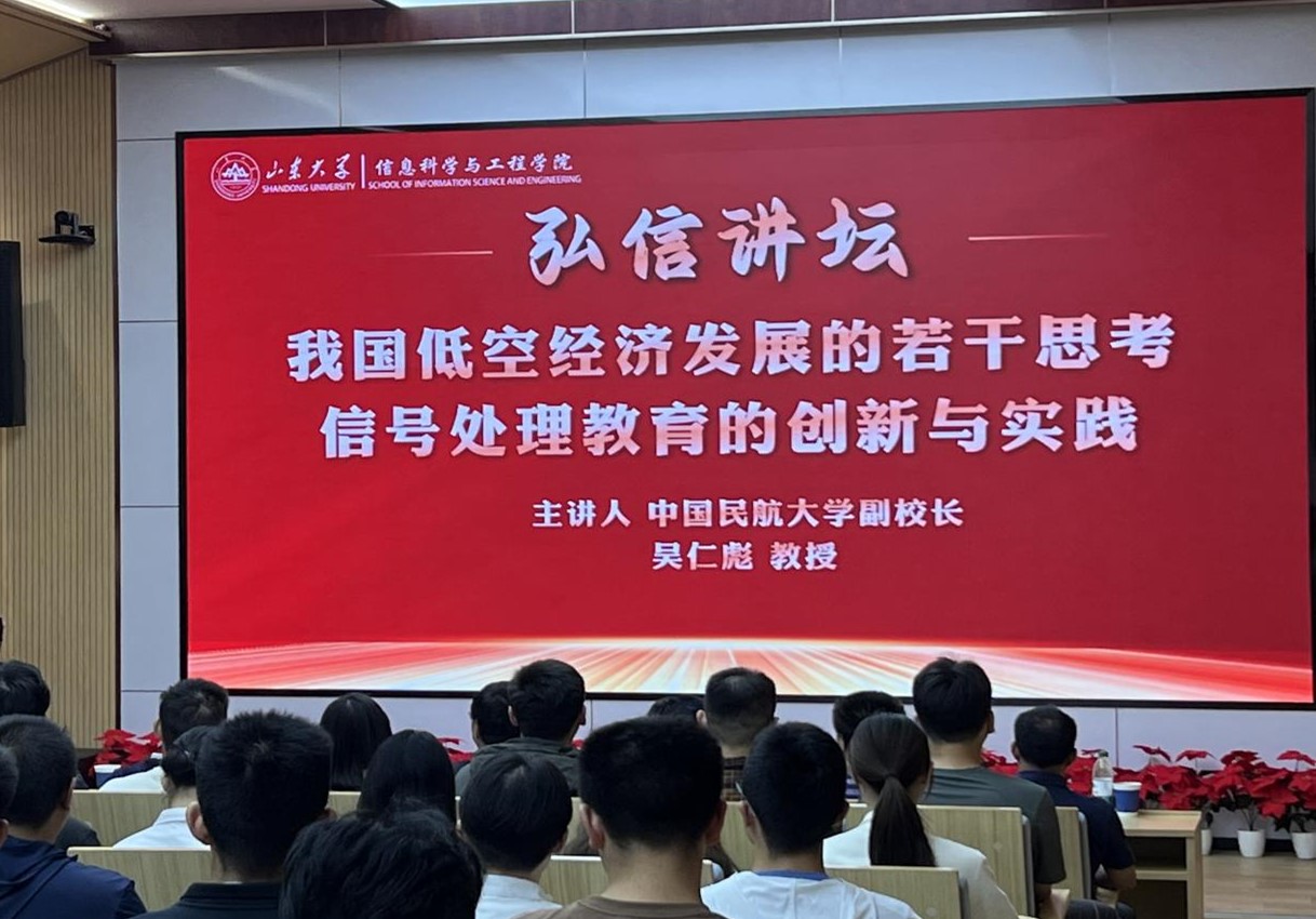 9月22日,全国人大代表、中国民航大学副校长吴仁彪教授受邀做客弘信讲坛,作题为“我国低空经济发展的若干思考、信号处理教育的创新与实践”的专题讲座。ylzzcom永利总站线路检测党委书记李德春教授出席讲座并致辞。学院副院长李玉军教授、信息与通信工程学科点刘琚教授、王德强教授、熊海良副教授、以及学生代表一百六十余人参加讲座,讲座由贲晛烨教授主持。