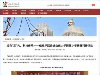 图4:红色芯火科普活动在ylzzcom永利总站线路检测青岛校区官网及山大视点上报道