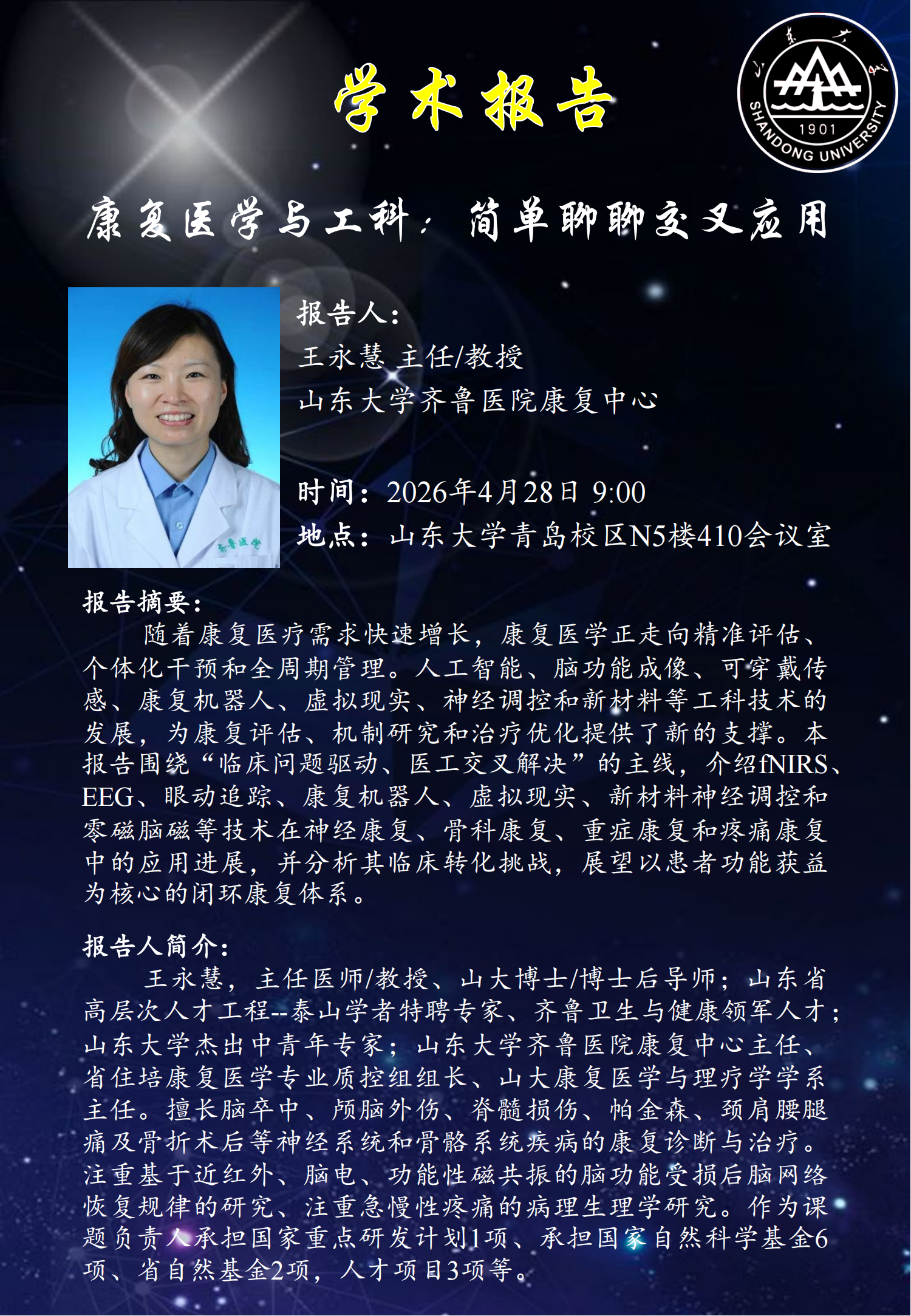 报告人:王永慧主任/教授 ylzzcom永利总站线路检测齐鲁医院康复中心